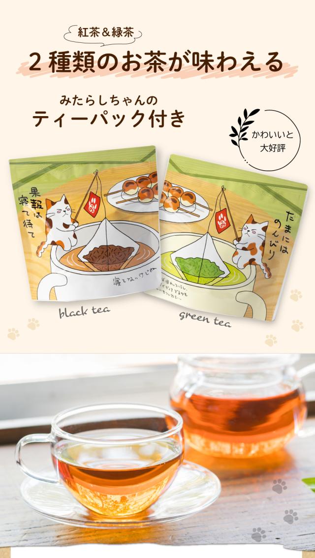 猫グッズ 猫ギフト ねこ お茶 緑茶 紅茶 プレゼント 紅茶ギフト みたらしちゃん フィギュア&ティーパックセット 送料無料 静岡産緑茶5包 静岡産紅茶5包 日本茶 静岡茶 国産 茶葉 ネコ 猫 ティーパック ティーバッグ 可愛い agesugi_sgu