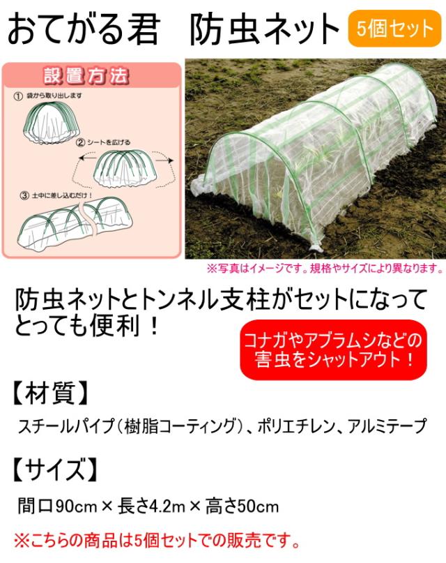 おてがる君 防虫ネット 90cm×4.2m×50cm 5個セット 園芸 園芸用小物 菜園 農業用資材 支柱 園芸用支柱 防虫ネット 一体化 栽培 家庭菜園 畑 農業 果物 野菜 苗 育成 防虫 虫 虫よけ ケース出荷 第一ビニール