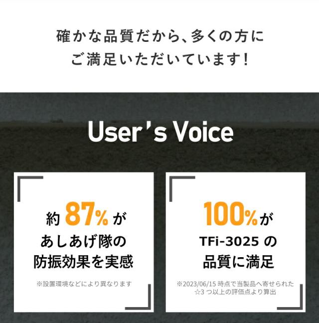 TFi-3025を使用することで床や階下への共振が抑えられ、振動が伝わりにくくなるため機械にも優しい商品です。