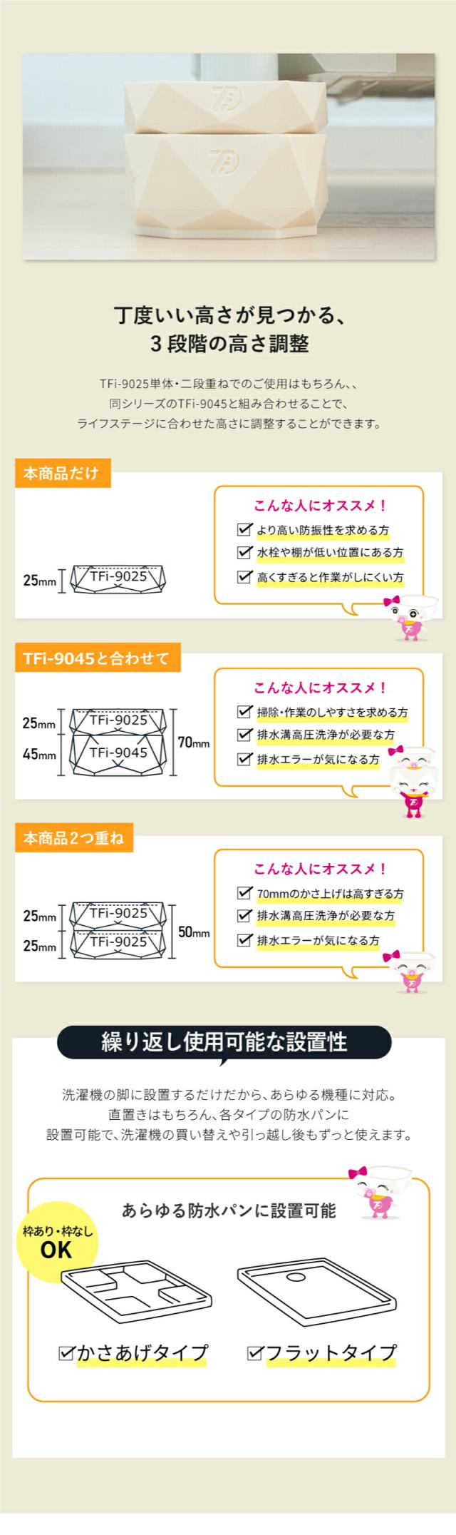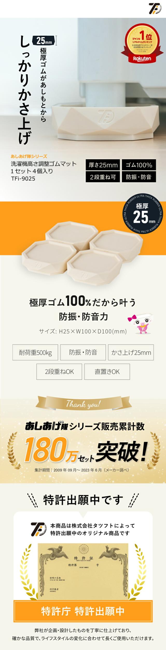 【メーカー公式】洗濯機かさ上げ台 防振・防音ゴムマット TFi-9025 ドラム式/縦型対応 洗濯機置き台 洗濯機 かさあげ 台 高さ調整 洗濯機かさあげ 嵩上げ キズ凹み防止 振動防止 防振 あしあげ隊 タツフト 足 白 騒音対策 洗濯パン 楽天ランキング1位