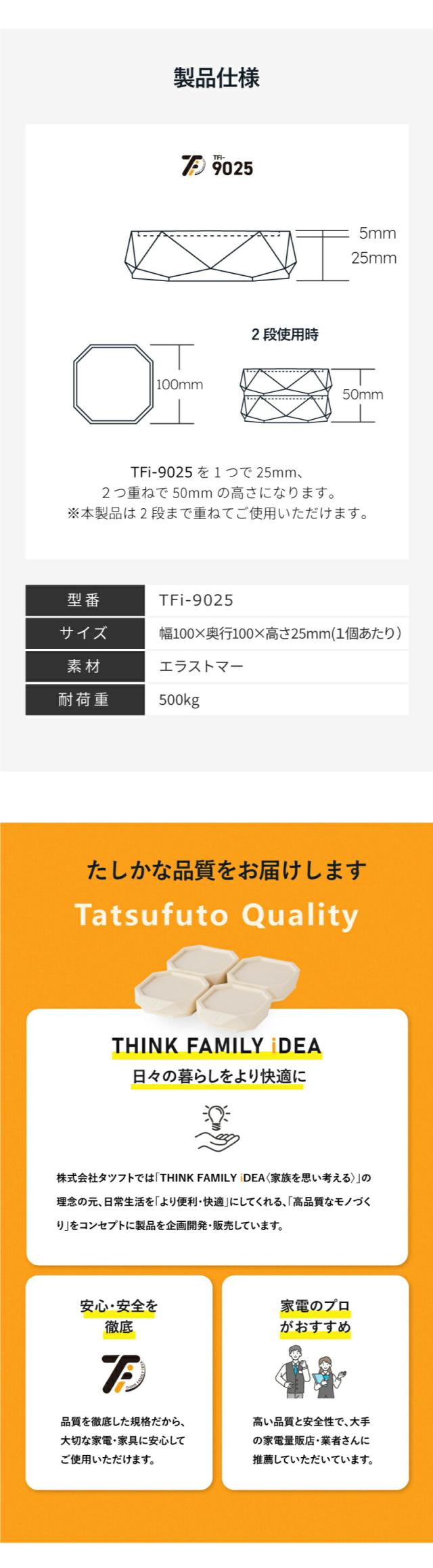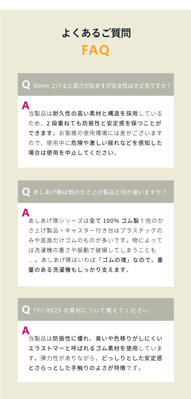 洗濯機かさ上げ台 防振・防音ゴムマット TFi-9025 ドラム式/縦型対応 置き台 洗濯機 かさあげ 高さ調整 洗濯機かさあげ 嵩上げ キズ凹み防止 振動防止 防振 あしあげ隊 タツフト 台 足 白 騒音対策 洗濯パン 洗濯機下 掃除 引っ越し 引越し 【あす楽対応】