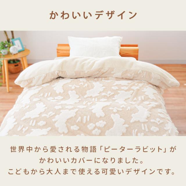 あったか掛け布団カバー シングル 150×210 ピーターラビット あったか 冬 あったかカバー シープ調 ボア 節電 洗える かわいい 布団カバー