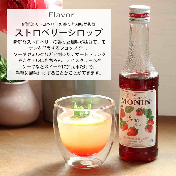 モナン ストロベリー シロップ 250ml ミニサイズ MONIN ノンアルコールシロップ スムージー カクテル 割り材 デザート お菓子 製菓 材料 アイス トッピング うちカフェ バー カフェ bar おうちカフェ パンケーキ ホットケーキ ケーキシロップ 自宅で cafe