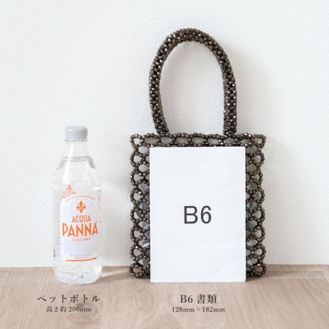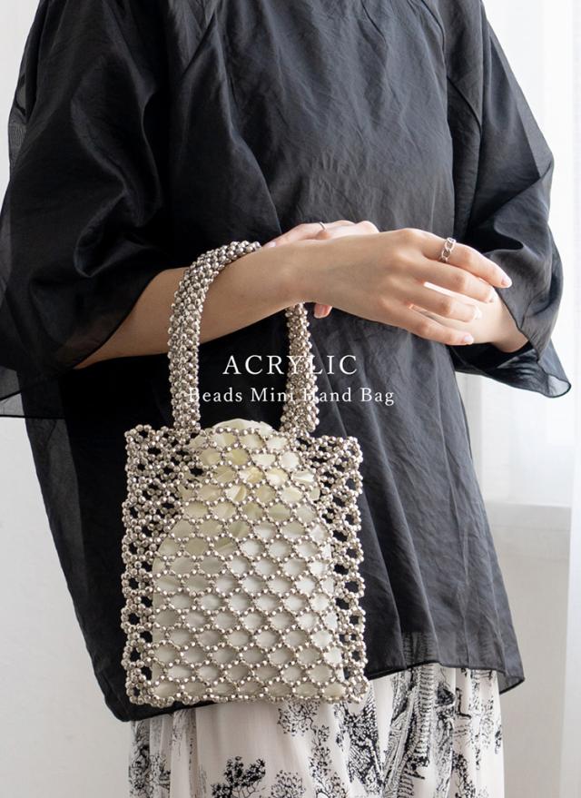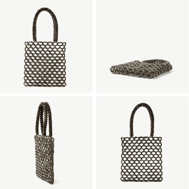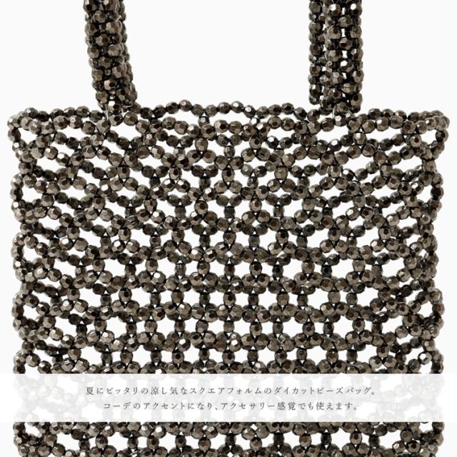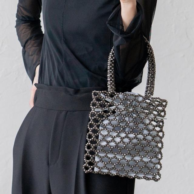 スクエアフォルムのダイカットビーズバッグ。