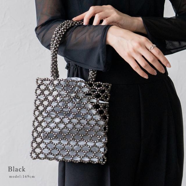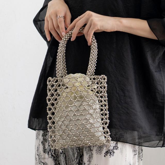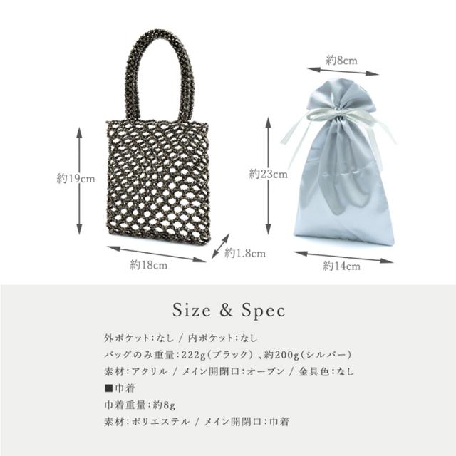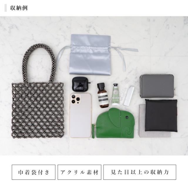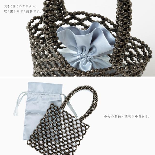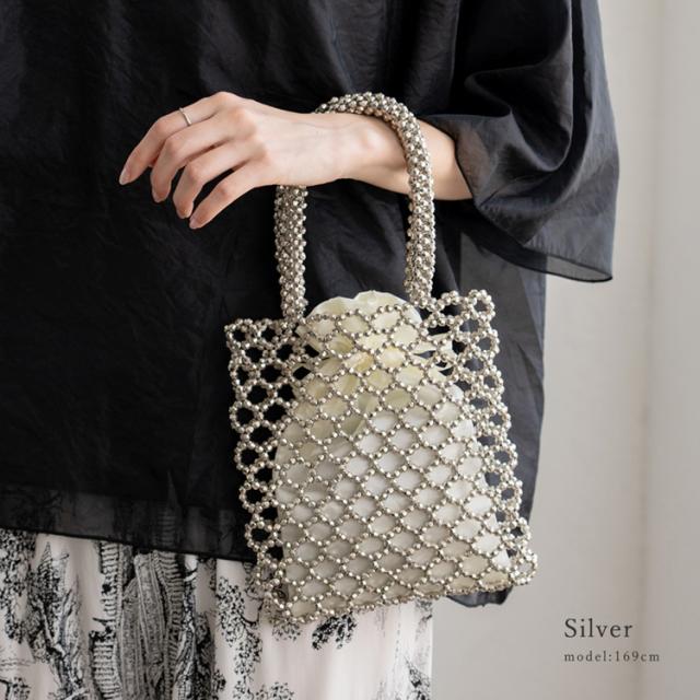 ビーズバッグ シルバー 巾着袋付き ビーズ バッグ ハンドバッグ 小さめ レディース 大人 ミニトートバッグ おしゃれ メッシュバッグ 編みバッグ nsb-30236z Depral/デプラル新生活