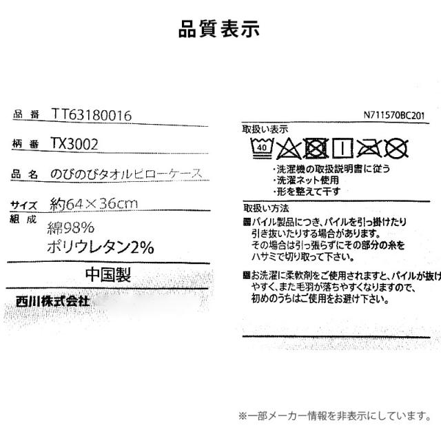 [ keyword | 西川 のびのびピローケース 34×64cm 綿 枕カバー まくらカバー ピローケース パイル タオル のびのび フィット 43×63用 無地 筒形 伸び伸び ]