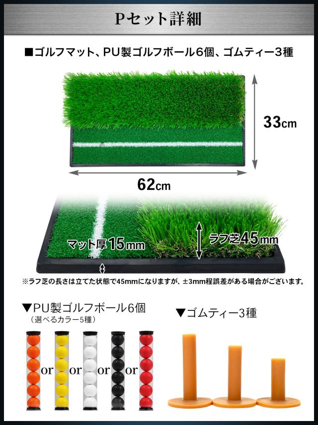 ゴルフマット ゴルフ 練習 マット 33×62cm Pセット 2WAY 人工芝 ラフ 45mm フェアウェイ ゴムマット土台が重いから動かない 素振り 軌道確認 ドライバー アイアン スイング 練習用 深ラフ芝 ゴルフティー ゴルフボール
