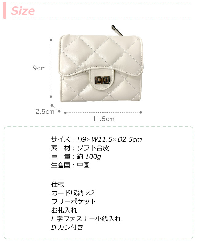 ![]() ![]() ![]() ![]() ![]() ![]() ・ Sherie Lips シェリーリップス ひねりキルトシリーズ シンプルデザインがおしゃれなキッズ・ジュニア向けの二つ折り財布。 カード収納も豊富で小銭入れは使いやすいL字ファスナー。 Dカン付きで市販のスマホストラップにつけられます。
