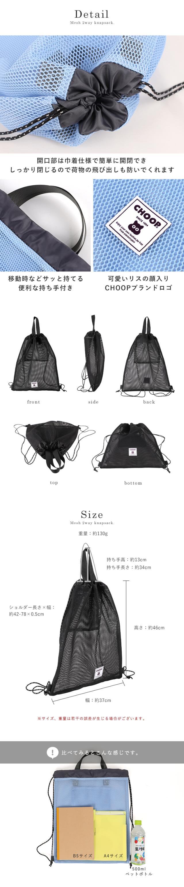 CHOOP シュープ ナップサック レディース 大人 2WAY ブランド かわいい メッシュバッグ ナップザック メンズ 軽量 アウトドア 海 プール スパバッグ 旅行 温泉 サウナ トラベルバッグ アウトドア フェス 旅行 女の子 小学校 ロゴ リスマーク POLYVALENT 【cpo-22804】