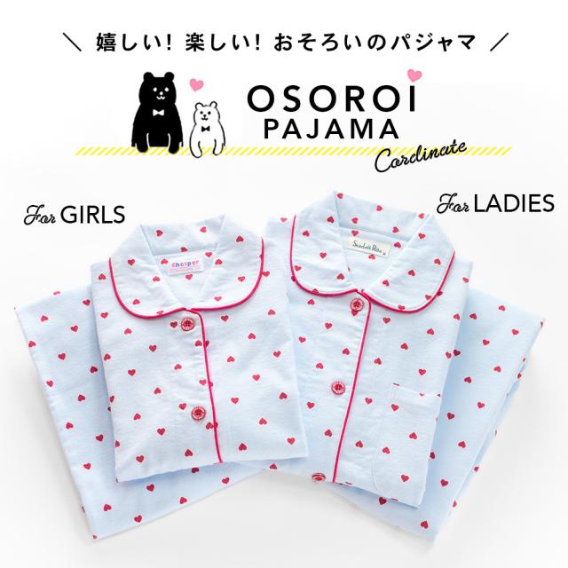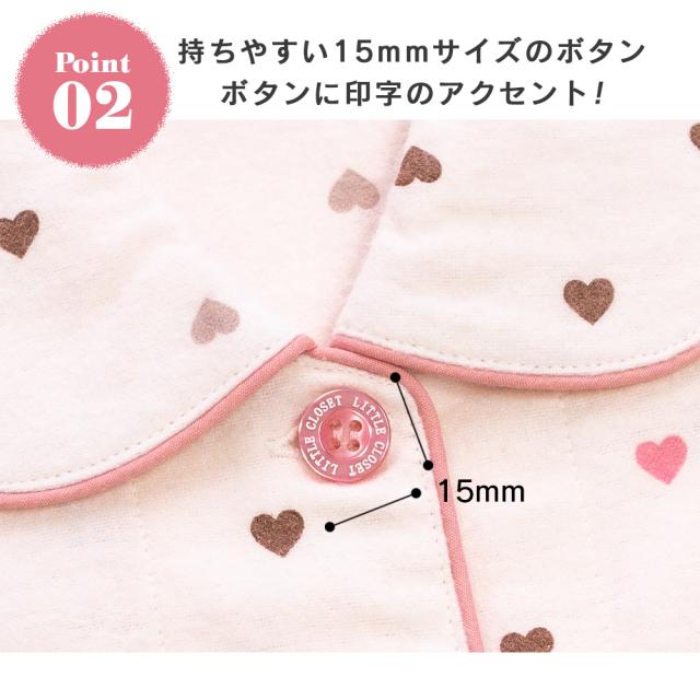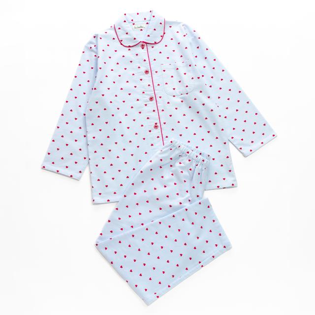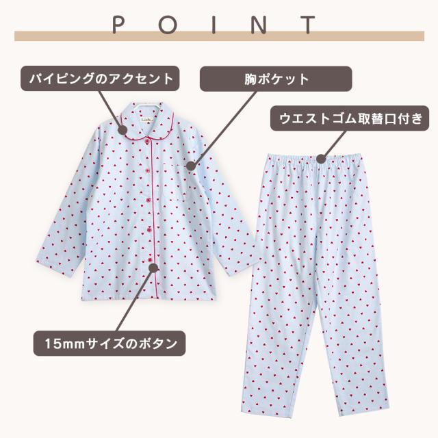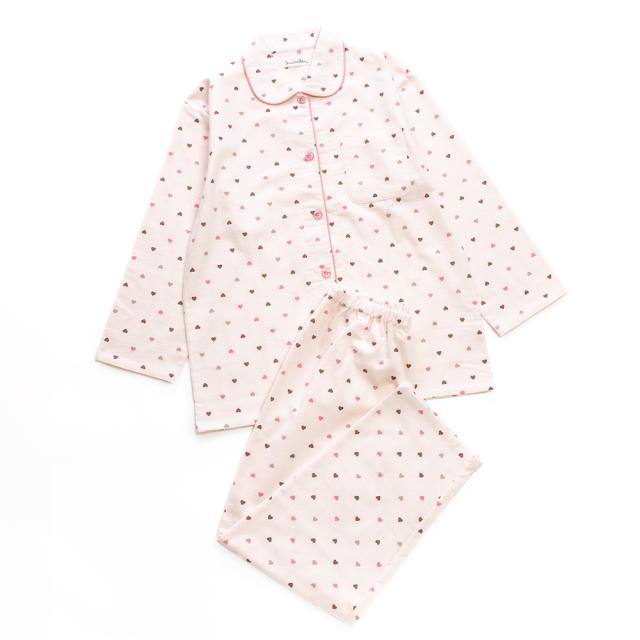 小さなハートを散りばめた シンプルだけど可愛らしく仕上げたパジャマです。