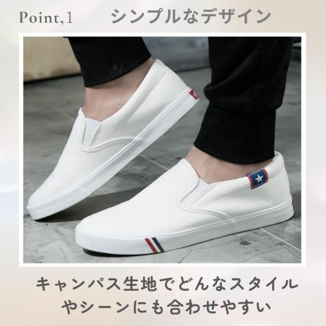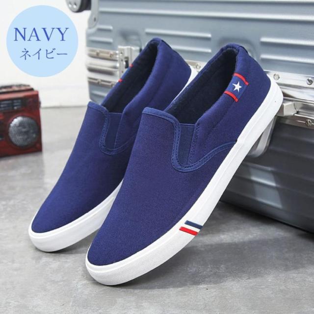 シンプルなキャンバス地のスリッポン。飽きのこないベーシックなデザインです。