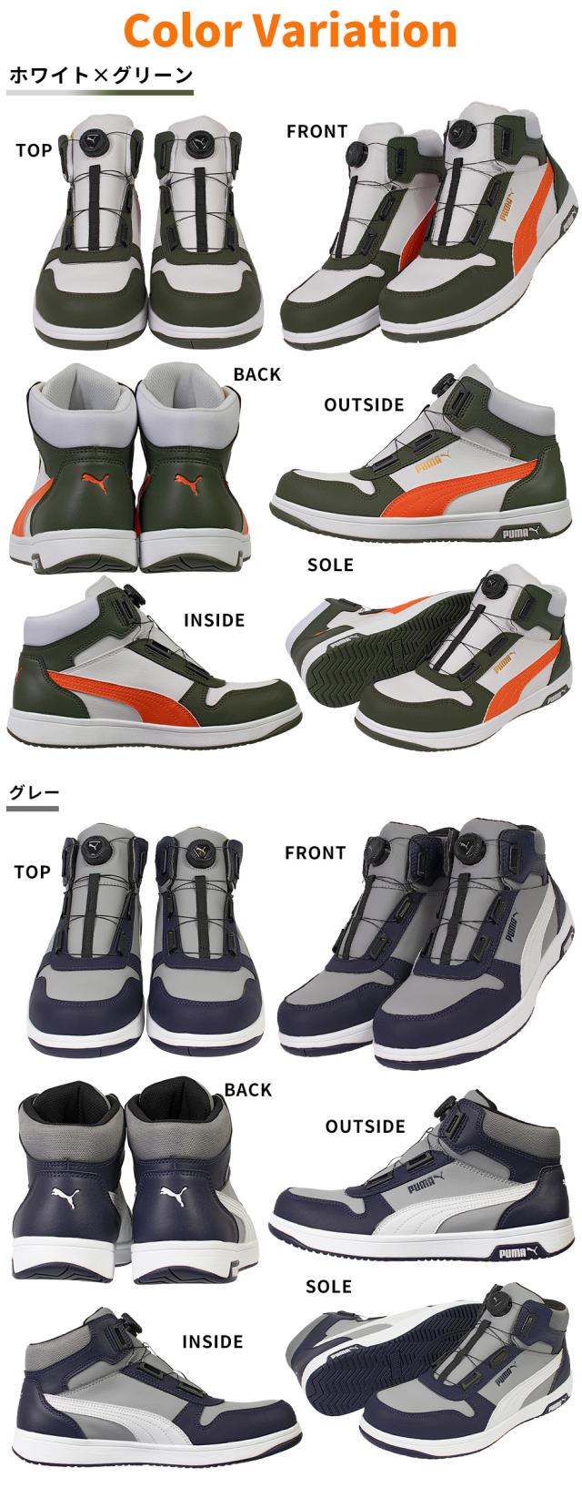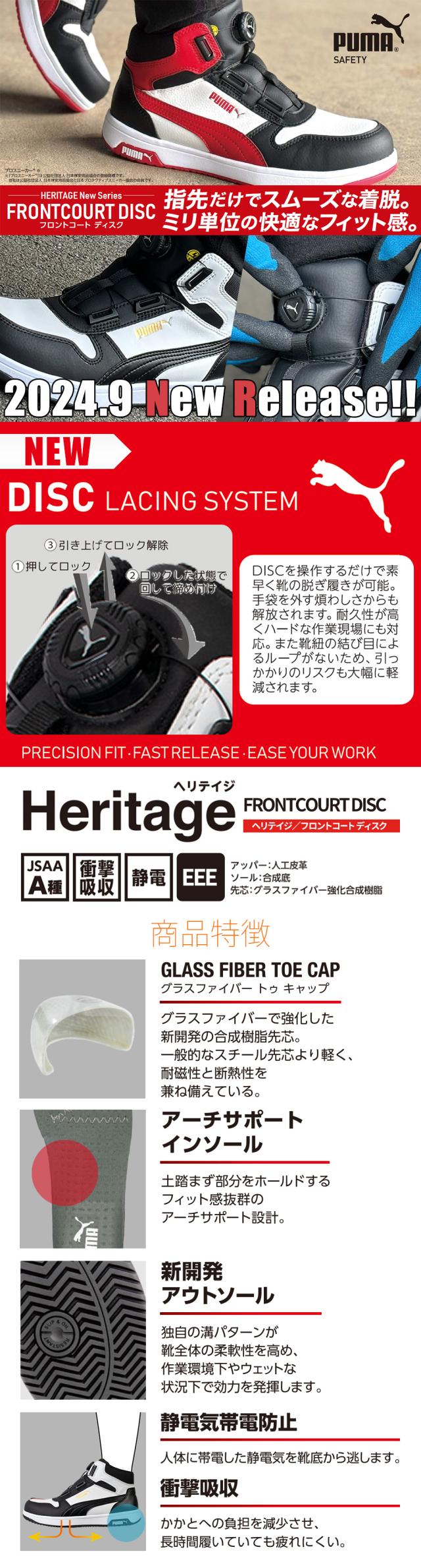 安全靴 ハイカット PUMA プーマ FRONTCOURT DISC MID フロントコート ディスク ミッド JSAA規格 新商品 新作 2024年 ダイヤル式 プロテクティブスニーカー 作業靴 メンズ 男性 かっこいい おしゃれ カジュアル 衝撃吸収
