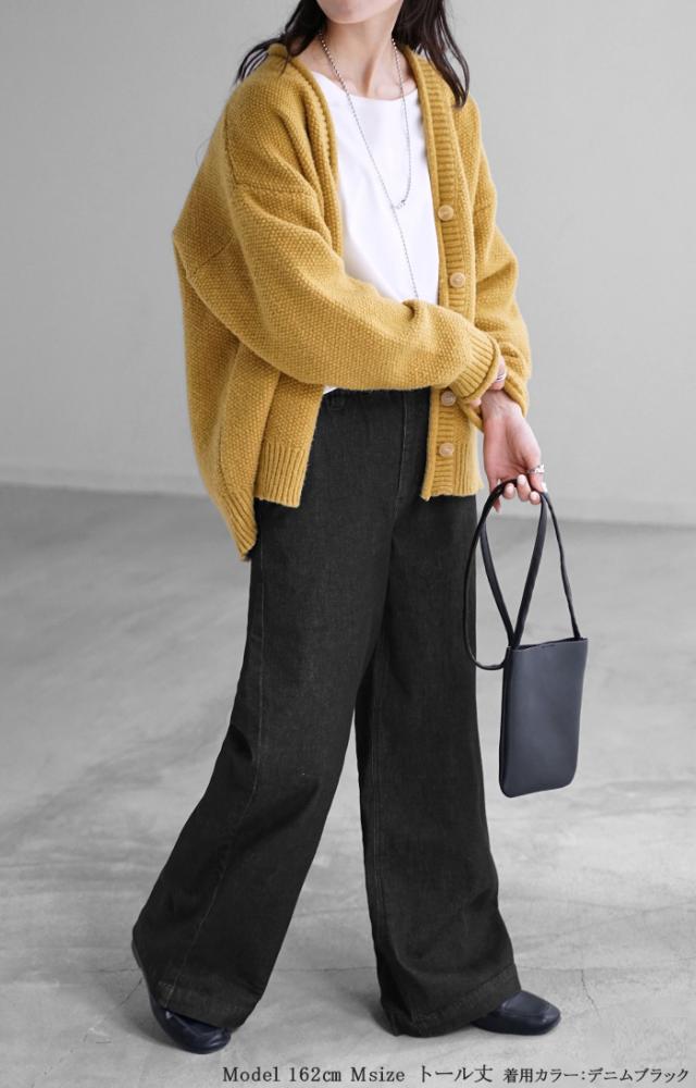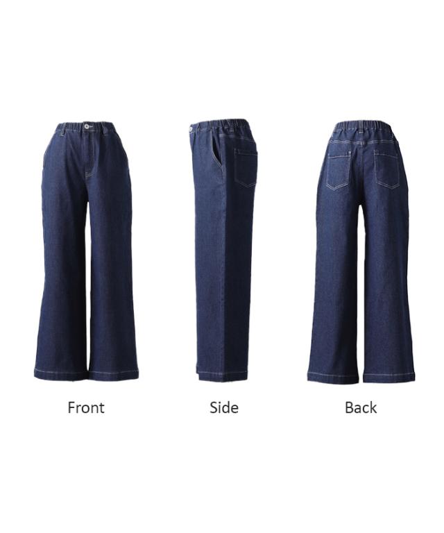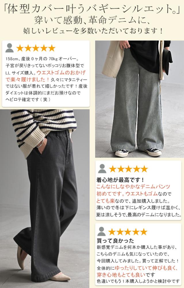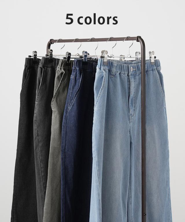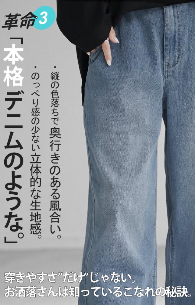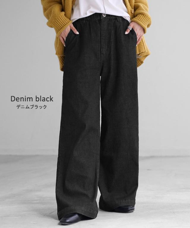 パンツ デニム スウェット ストレッチ レディース ボトムス ボトム ジーンズ ジーパン 無地 ハイライズ バギー ワイド ストレート ウエストゴム 軽い 軽量 ずぼん ズボン ワイドパンツ カジュアル 体型カバー 大きいサイズ ネイビー 黒 秋 冬 HUG.U 秋新作