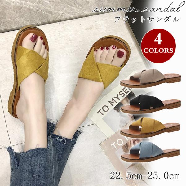 ビーチサンダル レディース ぺたんこ サンダル フラット クロスストラップサンダル コンフォート ビーチサンダル スリッパ 軽量 おしゃれ 可愛い 歩きやすい