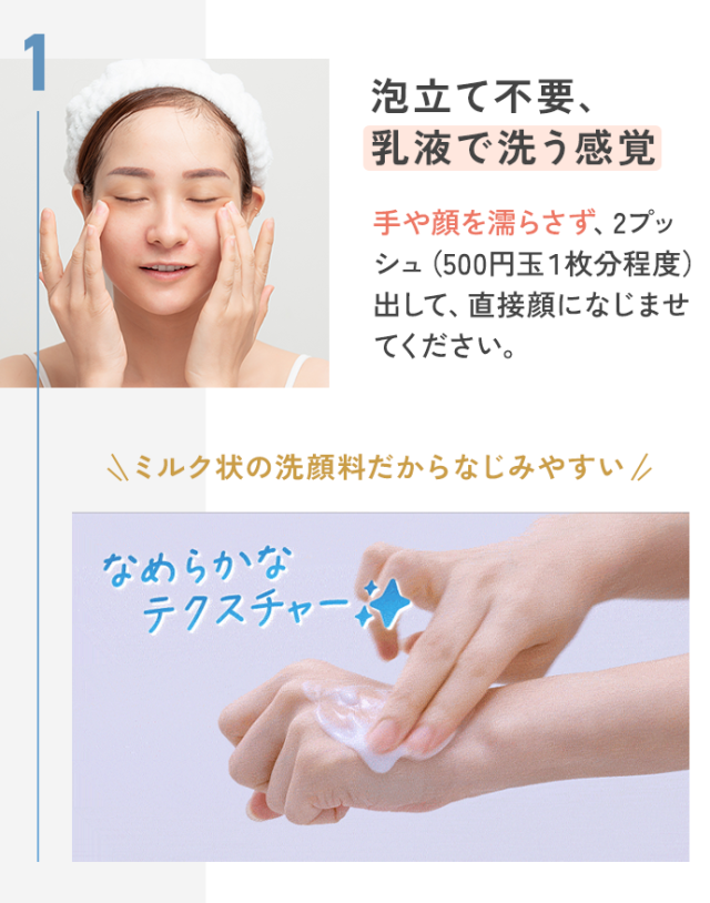 *泡立て不要で、なじませてすすぐだけで洗顔完了