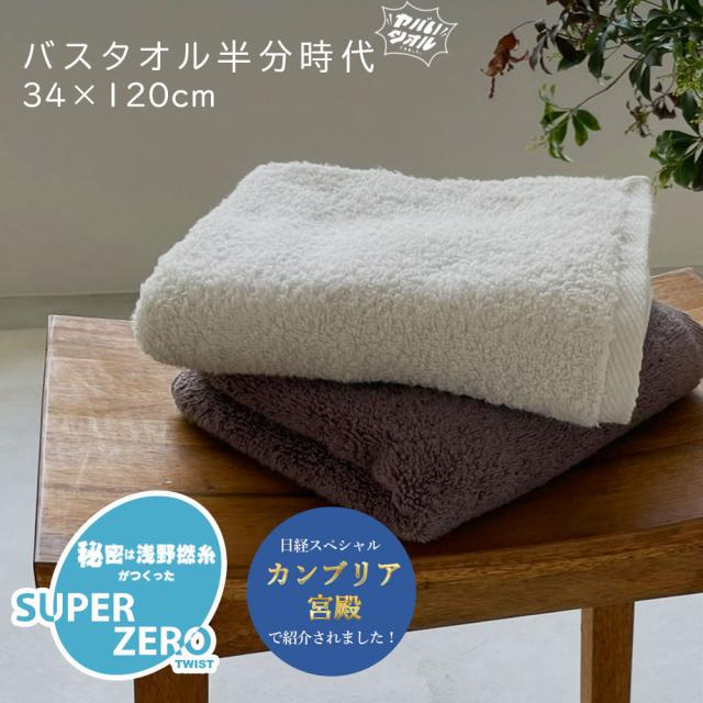 バスタオル半分時代 ヤバいタオル タオル バスタオル スーパーゼロ 浅野撚糸 6色 タオル カラータオル コットンタオル ふんわり 吸水 綿100% プレゼント 贈り物 ギフト 34×120cm