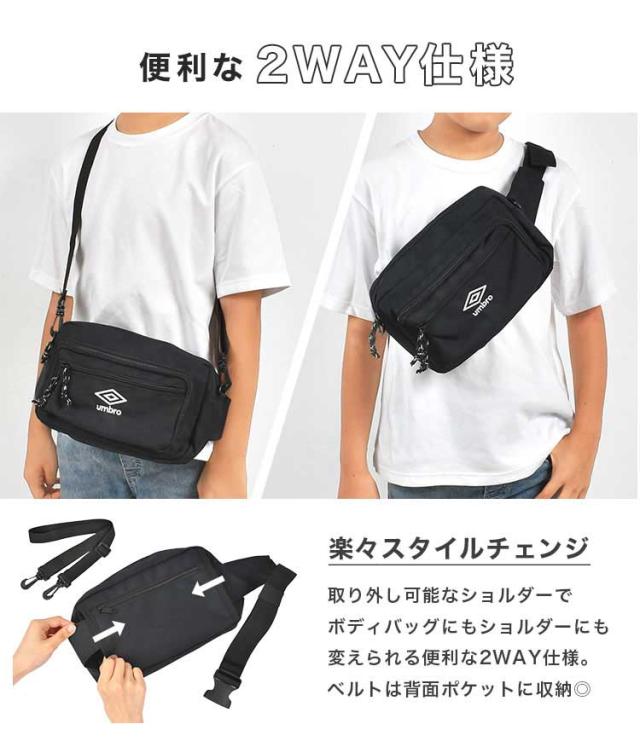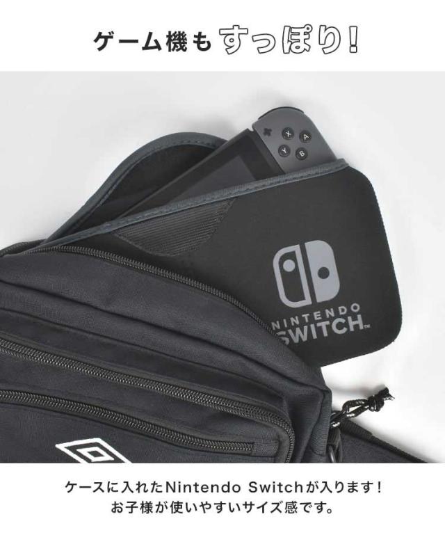 ショルダーバッグ umbro アンブロ 斜めがけバッグ キッズ 男の子 小学生 2way 軽量 スポーツ ブランド ボディバッグ 男子 中学生 子供 小さい スリム かっこいい シンプル おしゃれ 肩掛け カバン ロゴ ペットボトル A5 Switch スイッチ 入る ファスナー ポケット 収納 黒