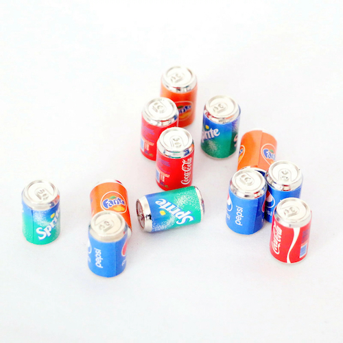 ミニチュア缶ジュースとミニチュアフードは、微細なディテールと手のひらに収まるサイズ感が特徴の魅力的なミニチュア雑貨です。