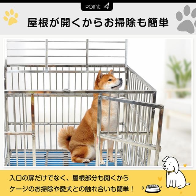 犬用ケージ 中型犬 大型犬 ケージ 犬小屋 頑丈 大型犬ゲージ 中型犬ゲージ 犬用ケージ 屋根付き キャスター付き ステンレス トレー 脱走防止 組立簡単 ペットケージ 犬用サークル 屋外 しつけ 訓練 pt088-105-sil