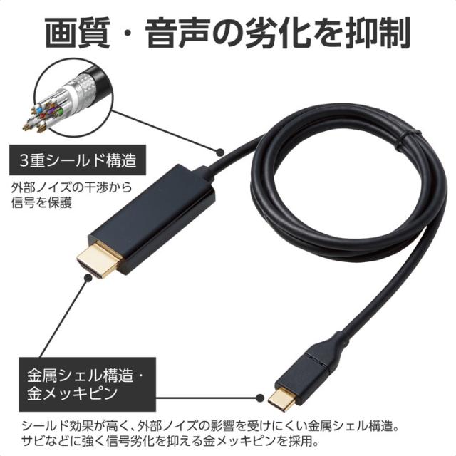 【在庫処分・お買い得!】 エレコム 変換ケーブル USB Type-C - HDMI タイプC 1.0m ブラック ┃CAC-CHDMI10BK2