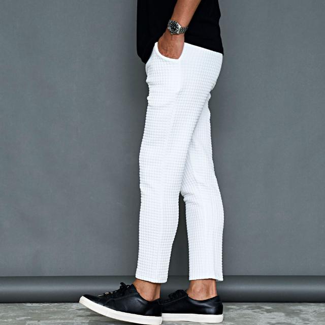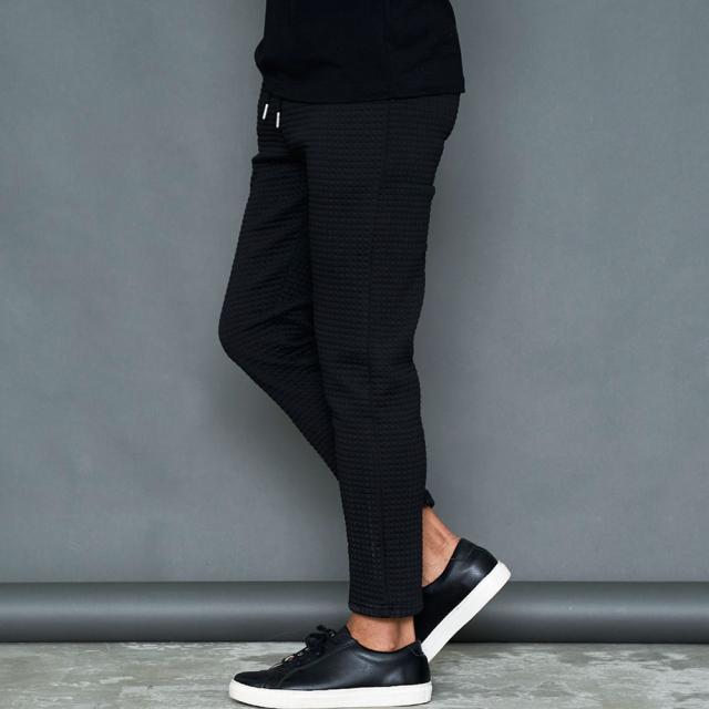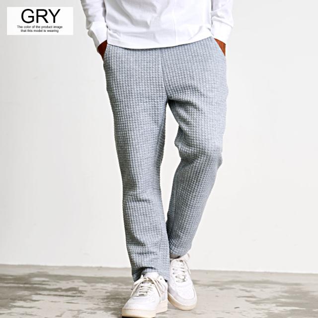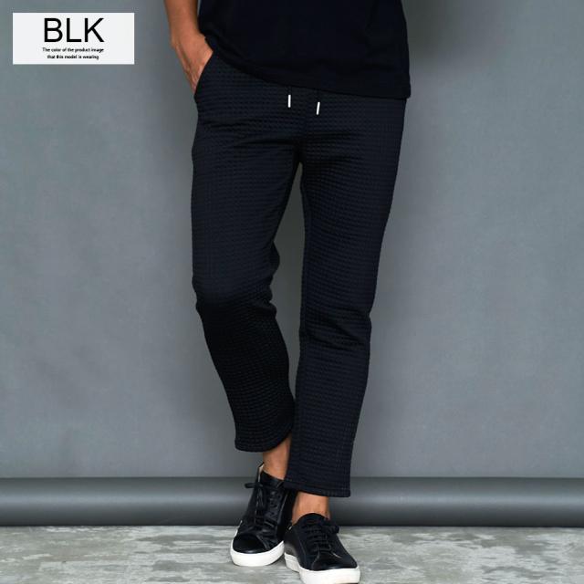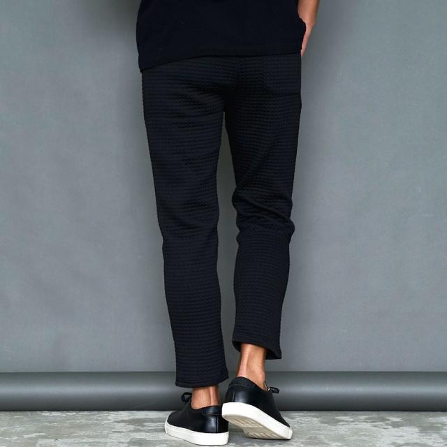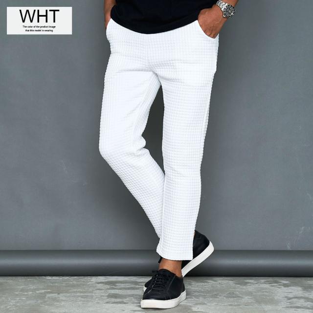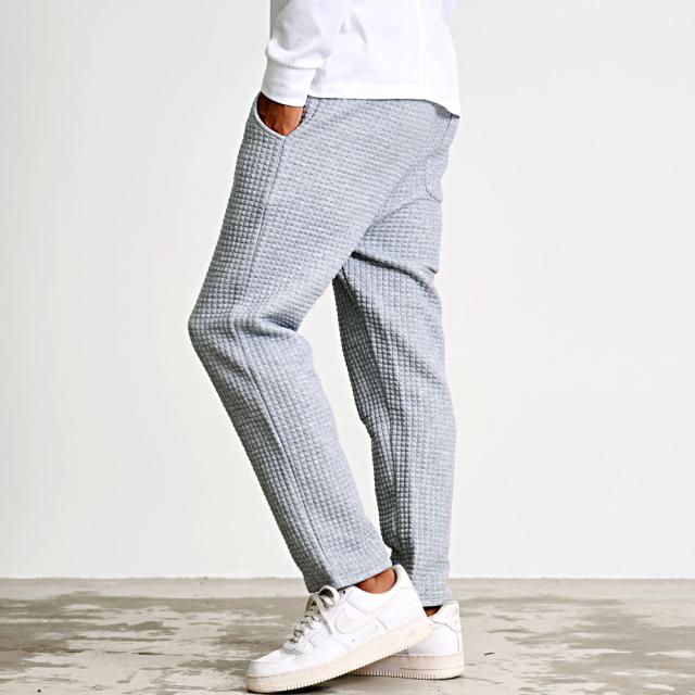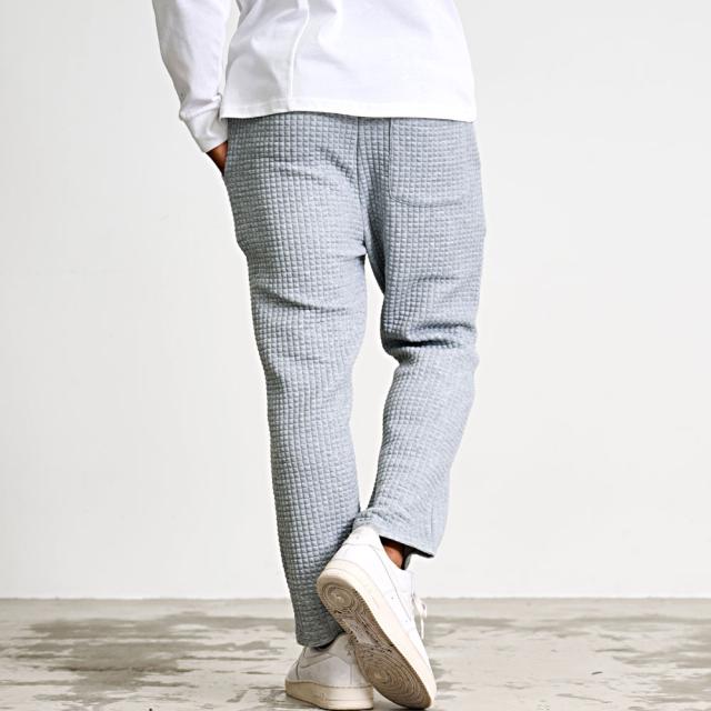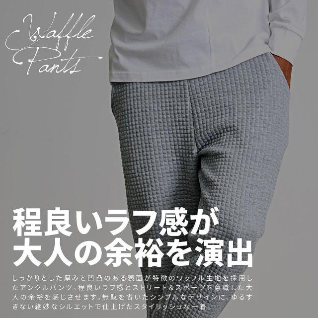 しっかりとした厚みと凹凸のある表面が特徴のワッフル生地を採用したアンクルパンツ。