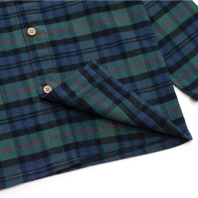 ■素材 :綿 100% ネル起毛 ■おすすめシーズン-秋冬/生地の厚み-厚手/伸縮性-なし/透け感-なし ■サイズ:130・140・150・160 ■カラー:ネイビー/グリーン ■トップス仕様:長袖/角衿/胸ポケット