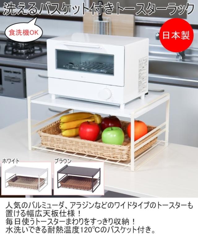 洗えるバスケット付きトースターラック 日本製 ラック おしゃれ ホワイト ブラウン レンジ台 収納 燕三条製 キープロダクション