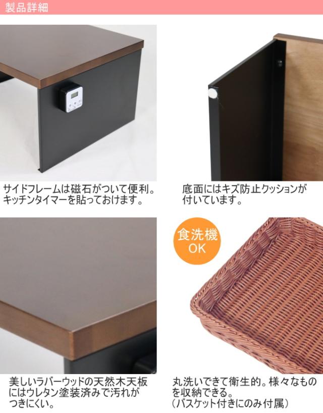天板は木製でトースターを置いて、下段には食パンやジャム、スパイスや常温保存食品などを置いたり。 コーヒーメーカーを置いて、下にはコーヒー関連アイテムを置いたり、リビングチェストの上に置いて飾り棚としても重宝します。 天板下内寸高さが約18cmあるので収納もラクラク。 コーヒー周りの小物やコップ、パンやジャムなどを収納できます。 スチール製で頑丈!完成品なので着いたらすぐに使えます。 |