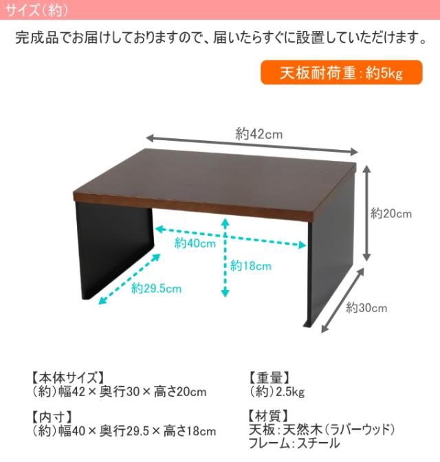 本体サイズ:(約)幅42×奥行30×高さ20cm 天板有効サイズ:(約)幅42×奥行30cm 天板下内寸サイズ:(約)幅40×奥行29.5×高さ18cm |