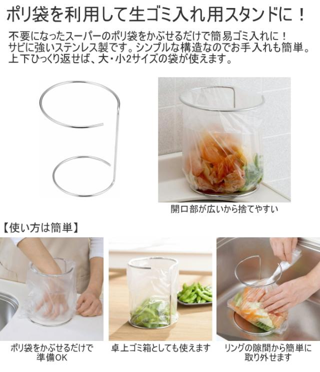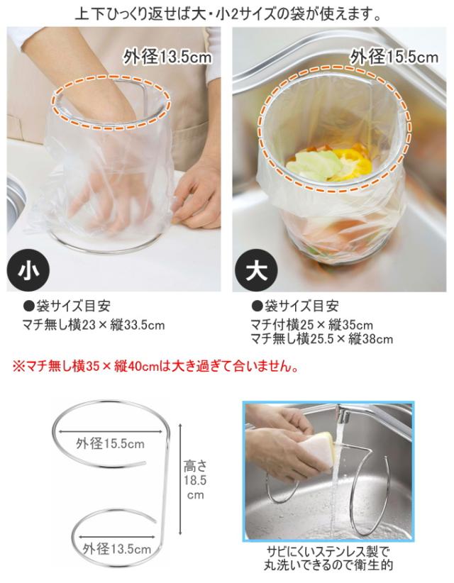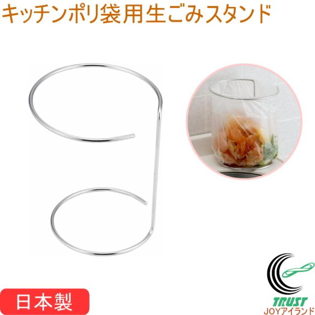 キッチンポリ袋用生ごみスタンド 38125 1個 日本製 シンクまわり ステンレス製 丈夫 スタンド 三角コーナー 下村企販