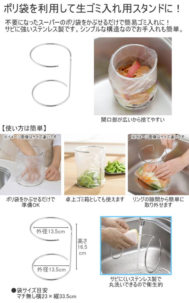キッチンポリ袋用生ごみスタンド S 41490 1個 日本製 シンクまわり ステンレス製 丈夫 スタンド 三角コーナー 下村企販