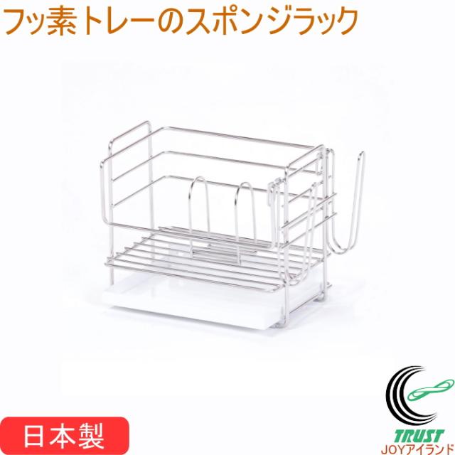 フッ素トレーのスポンジラック 1個 45259 日本製 ステンレス製 スポンジ置き 洗剤ラック 丈夫 フッ素トレー 下村企販