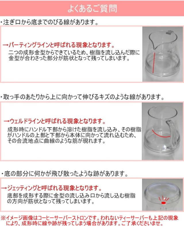 本品はガラス製ではありません。 製品表面に見られる筋状の模様などは製造上起こりうる現象で、使用上問題はありません。 電子レンジはお茶等の温めのみ可能です。(ふたをしたまま使用できます) 直火やオーブン、保温プレートで使用しないでください。 |