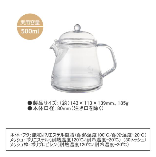 われないティーサーバー 500 TW-3777 日本製 ティーポット 丈夫 軽い 割れにくい プラスチック製 食洗機OK 曙産業