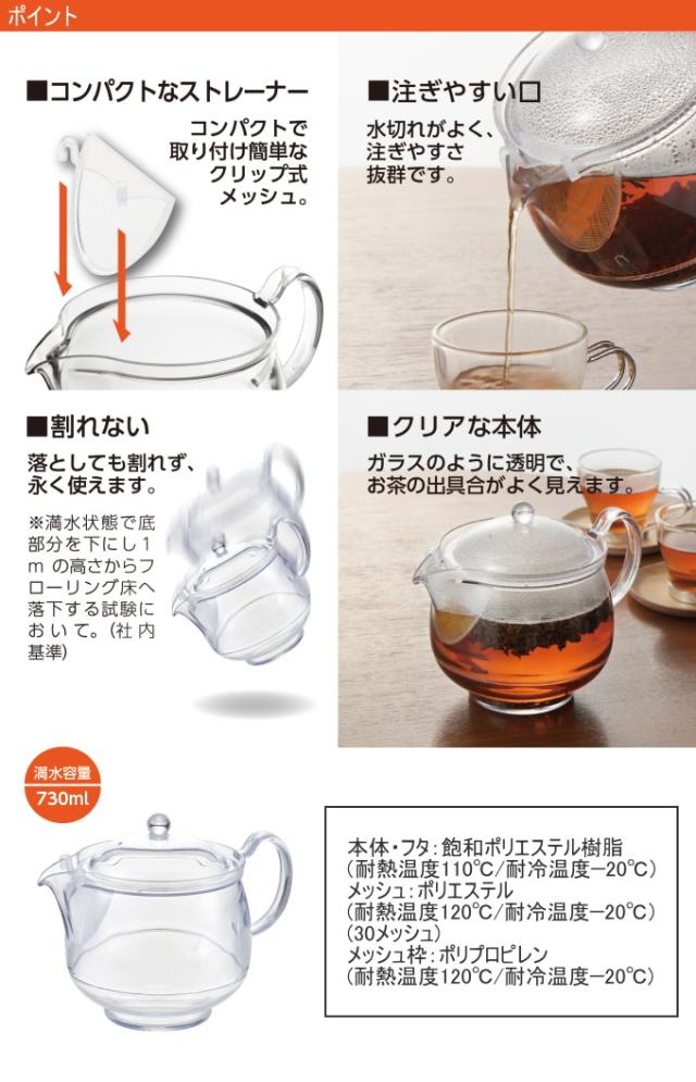 クリアティーポットLL クリップメッシュ TW-3755 日本製 丈夫 軽い 割れにくい プラスチック製 食洗機OK 曙産業
