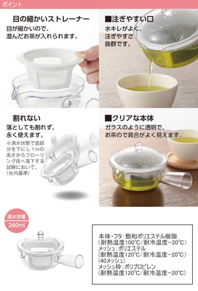 クリアティーポット ポリエステルメッシュ 急須タイプ TW-3770 日本製 割れにくい プラスチック製 食洗機OK 曙産業