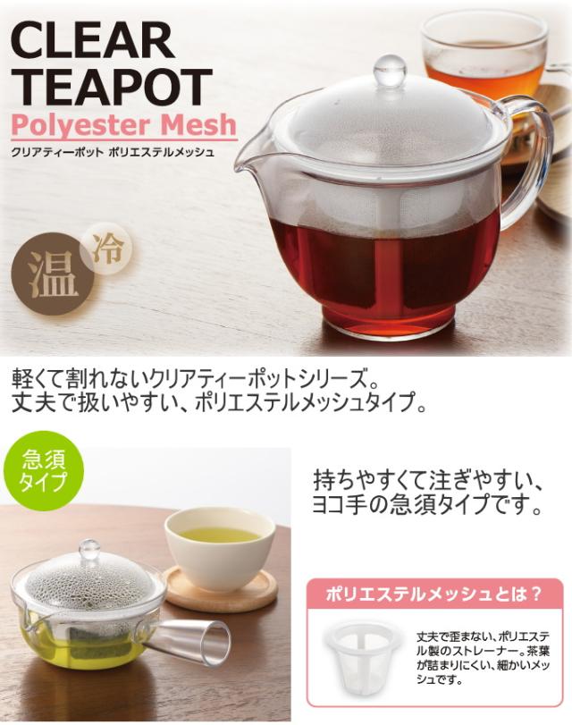 クリアティーポット ポリエステルメッシュ 急須タイプ TW-3741 日本製 割れにくい プラスチック製 食洗機OK 曙産業