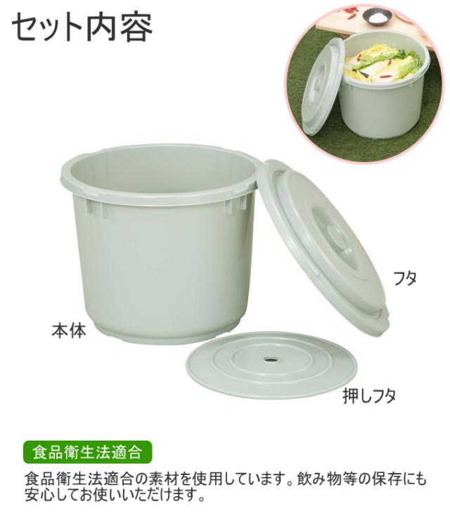 つけもの容器 10型 押しフタ付 グレー 日本製 漬物容器 樽 蓋付き 10L 食品衛生法適合 TONBO トンボ 新輝合成