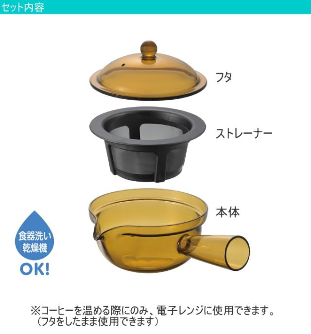 われない珈琲急須 横手 TW-3774 1個 日本製 ティーポット 急須 丈夫 軽い トライタン製 割れない 琥珀色 曙産業