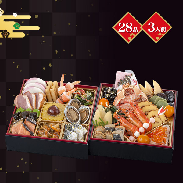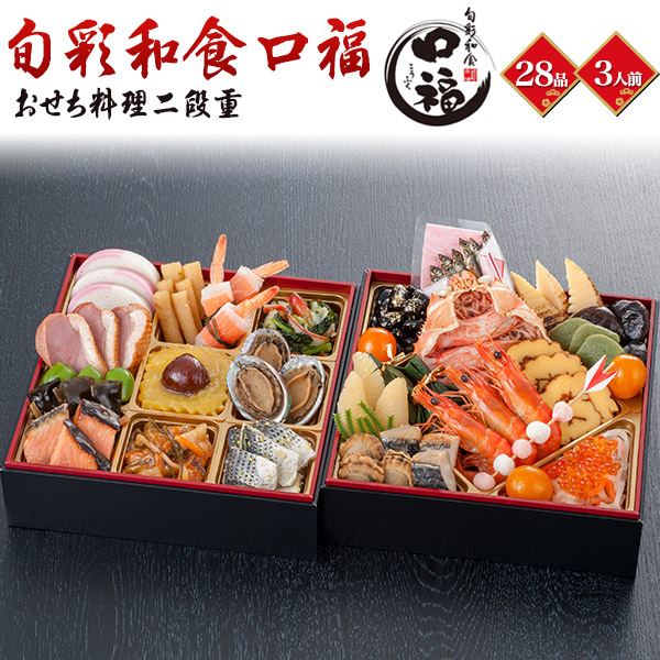 おせち 2026年 二段重 金沢・近江町市場旬彩和食 口福(全28品目 3人前)和風 お節 御節 おせち料理 お祝い 新年 豪華 オードブル 定番 和食 おつまみ 酒の肴 二段重 少人数 3人用 小さいサイズ 有名店監修 おせち予約【クール(冷凍便)】 送料無料