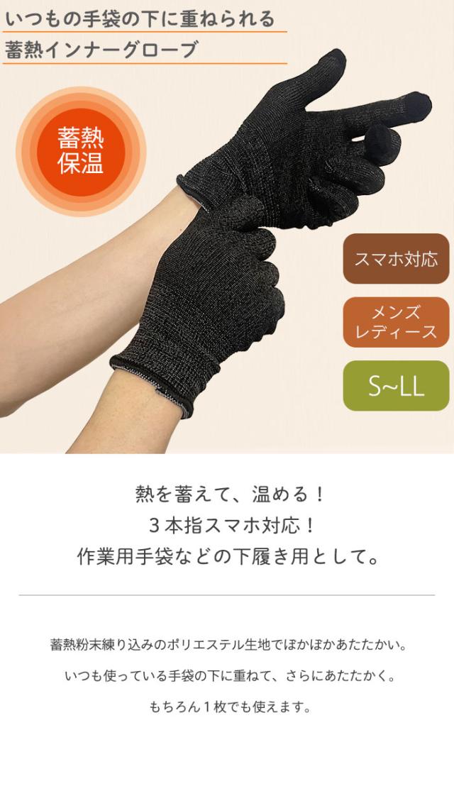 蓄熱 インナーグローブ タッチパネル対応 スマホ対応 手袋 メンズ レディース ユニセックス 男女兼用