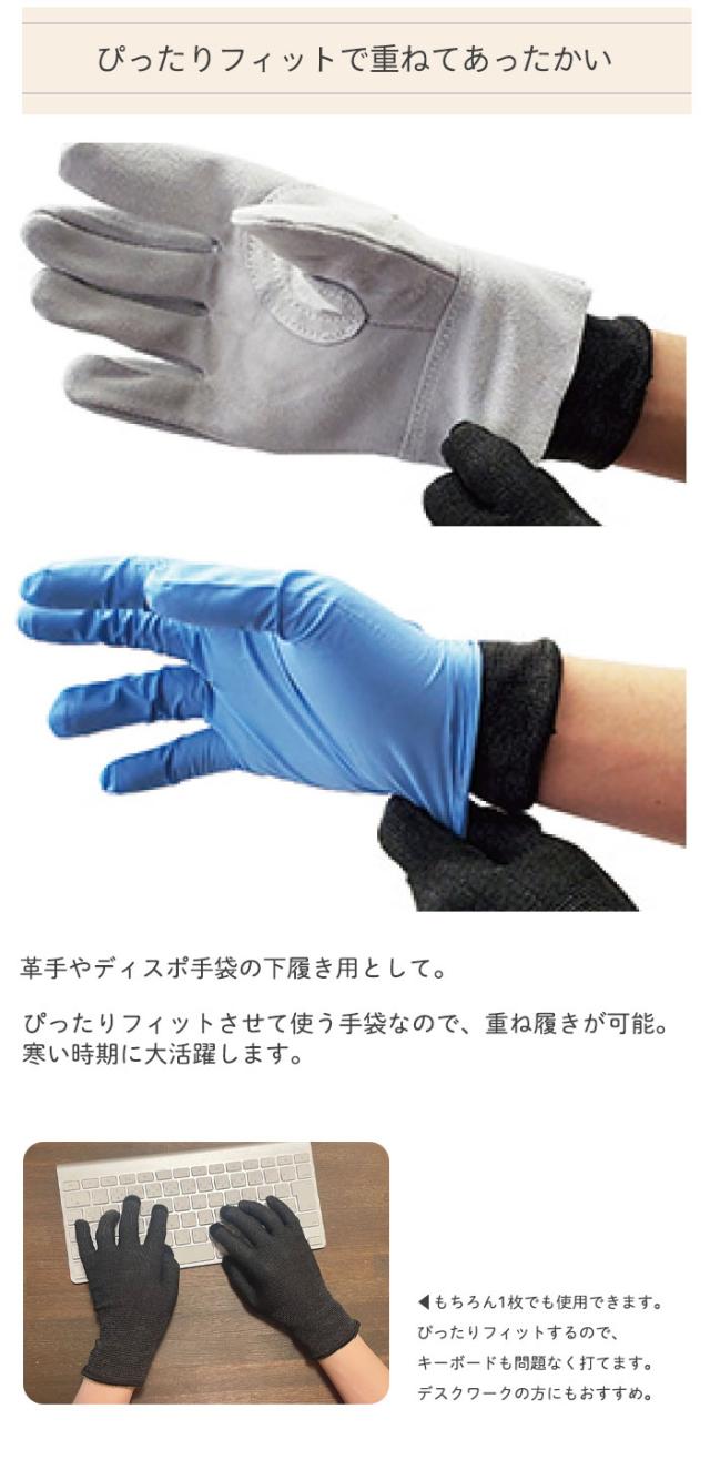 非常に伸縮性がある糸を使用しており、生地が伸びて手にぴったりフィット。