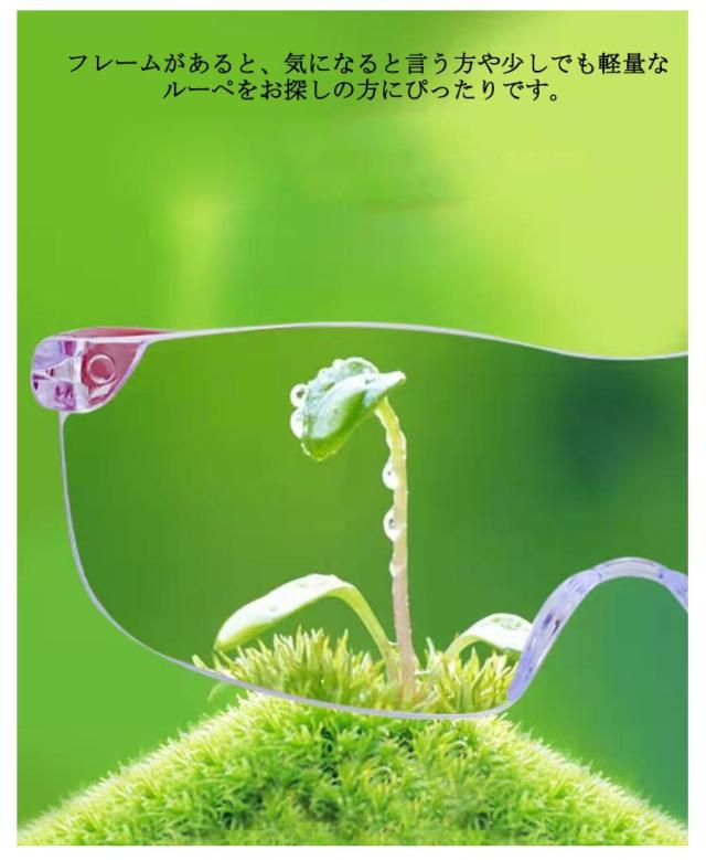 | 3/5/8/10/12/16倍拡大 メガネの上からかけられる拡大ルーペ2個入り! 上下ともフレームがないから、視界がクリアに見えます。 フレームがあると、気になると言う方や少しでも軽量なルーペをお探しの方にぴったりです。 | |