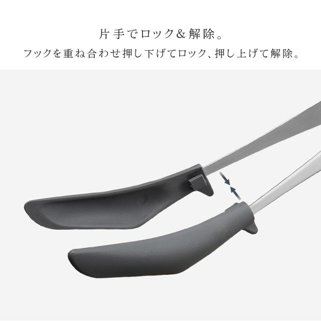 フックを重ね合わせ押し下げてロック、押し上げて解除ができます。