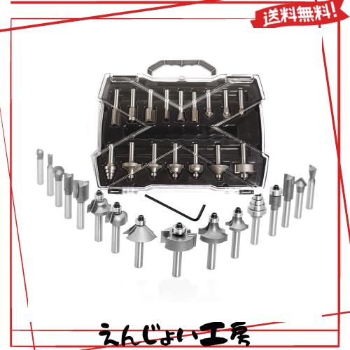 トリマー用ビットセット 【ビットセット15本】:目地払いビットを含め使用頻度が高いビット15本トリマービットを備え、様々な木工作業に適用します。反キックバック設計により、キックバックの影響を減らし、より安全な作業環境を提供します。全ての軸径:6mm 刃部にYG6Xタングステン鋼を採用し、普通のYG8鋼より鋭く、切断速度に優れて耐摩耗性も優秀です。ショットブラスト処理により耐熱性と耐久性がさらに向上です。 異なるサイズのベアリングを四つ付属します。交換により切り込みの深さ範囲が調整できビット交換の便利さを目的として、寸法仕様を紙カードに印刷し、ビット交換時のチェックが迅速に行えます。プラスチック製収納ケースも付属します。