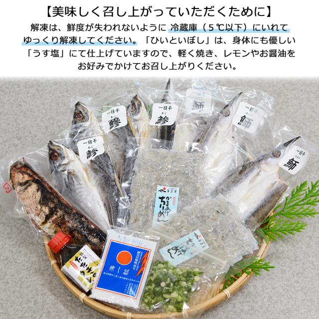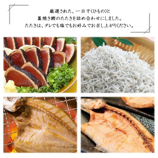 厳選された、一日干(ひもの)と藁焼き鰹のたたきを詰め合わせにしました。