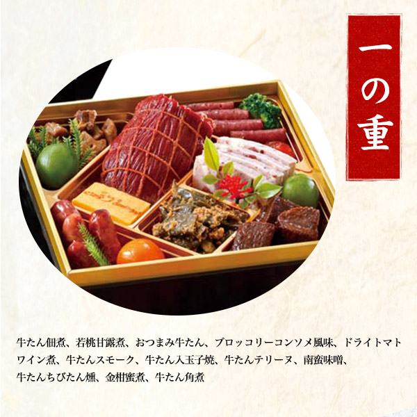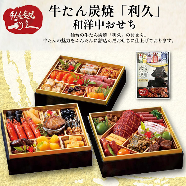 仙台の牛たん炭焼「利久」のおせち。牛たんの魅力をふんだんに詰込んだおせちに仕上げております。
