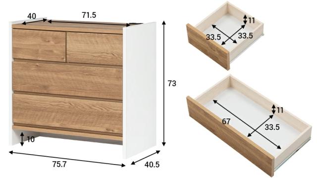 色のコントラストが美しいツートンスタイル。シンプルな佇まいはどんなインテリアにも合わせやすく、収納力や優れた機能性も併せ持つ充実したチェストです。