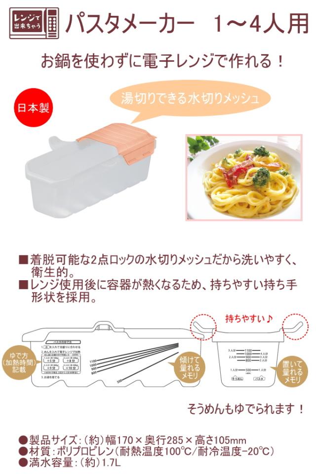 レンジで出来ちゃう パスタメーカー 1〜4人用 D-6621 日本製 電子レンジ レンジ 簡単調理 調理用品 キッチン 料理 調理器具 キッチン用品 便利グッズ パスタ 素麺 そうめん