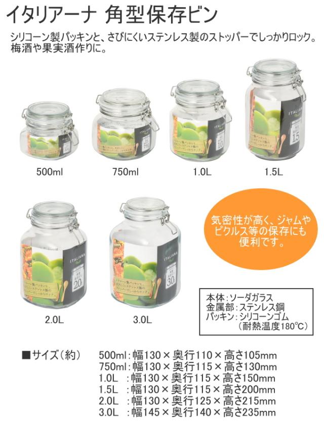 イタリアーナ 角型保存ビン 750ml 1個 L-1010 保存容器 容器 ビン びん ガラス 角型 漬物 ジャム ピクルス 保存瓶 保存ビン ボトル パッキン おしゃれ